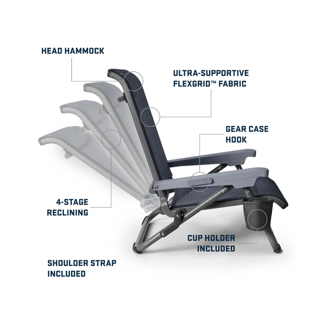 - Multiple reclining positions and waterfall headrest offer maximum comfort and nap-ability